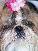 petit modele,tete ronde et de bonne forme,expression douce,yeux de bonne forme et de couleur,excellent prognathisme,anterieurs corrects,la poitrine pourrait etre plus ronde et devrait encore s'eclater,ligne de dos est legerement courbee,attache de fouet correcte,l'arriere main est correcte;doit se muscler,excellente fourrure;croise ses anterieures à la marche